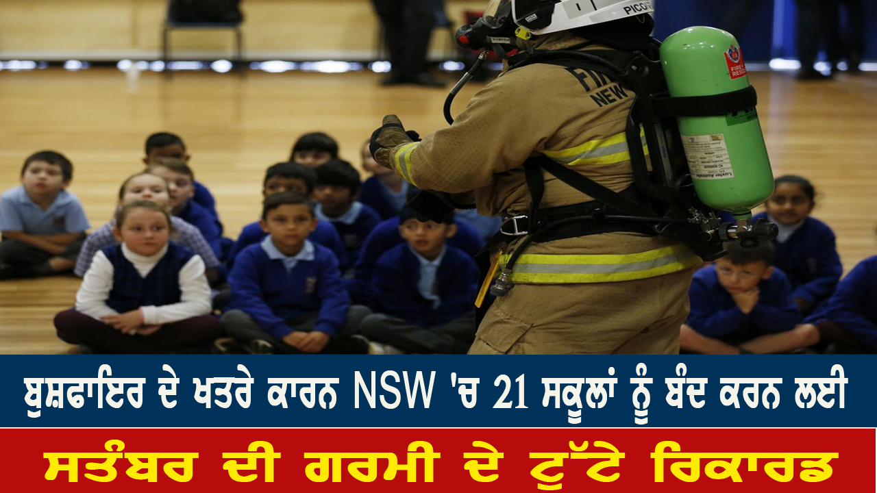 ਨਿਊ ਸਾਊਥ ਵੇਲਜ਼ ਵਿੱਚ 20 ਤੋਂ ਵੱਧ ਪਬਲਿਕ ਸਕੂਲਾਂ ਨੂੰ ਦੱਖਣੀ ਤੱਟ 'ਤੇ ਅੱਗ ਲੱਗਣ ਦੇ ਖਤਰੇ ਦੀ ਚੇਤਾਵਨੀ ਦੇ ਵਿਚਕਾਰ ਬੰਦ ਕਰ ਦਿੱਤਾ ਗਿਆ ਹੈ। ਬੰਦ ਹੋਣ ਨਾਲ ਖੇਤਰ ਦੇ 21 ਸਕੂਲਾਂ 'ਤੇ ਅਸਰ